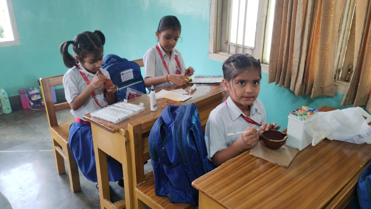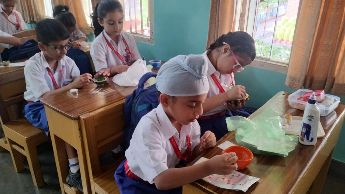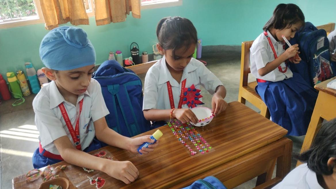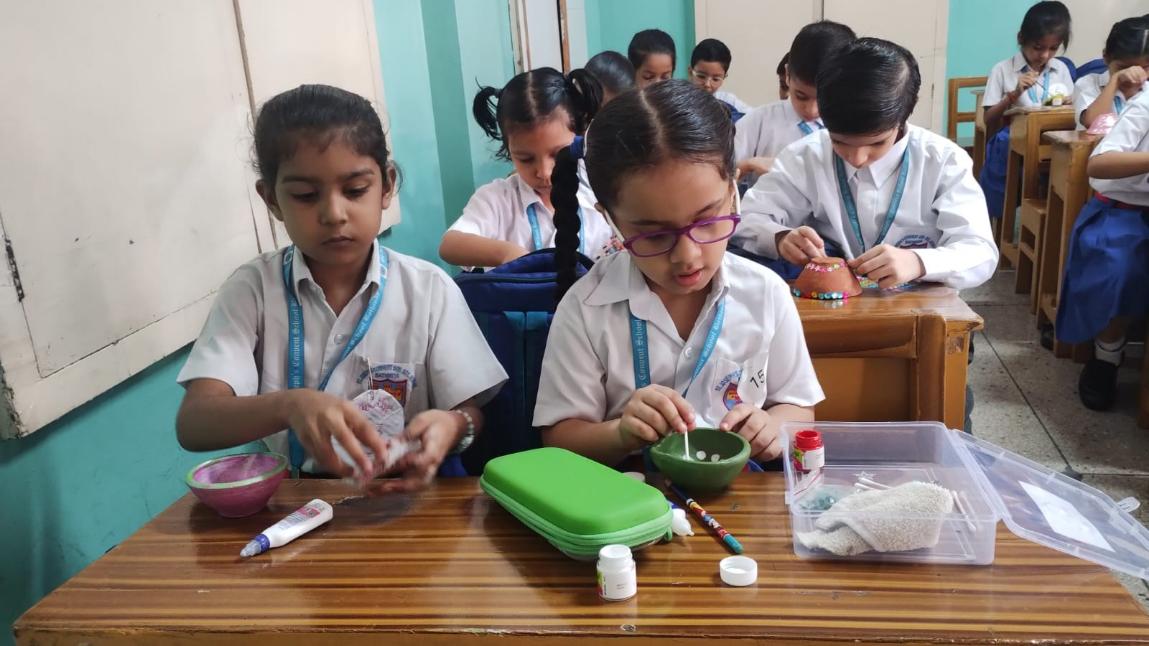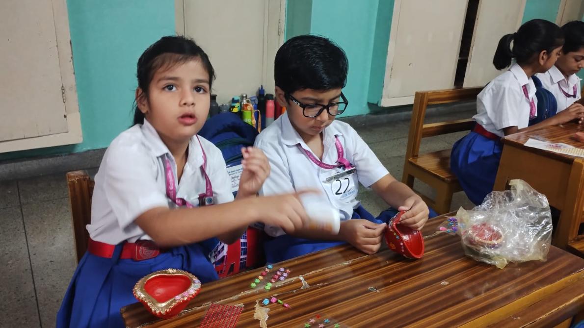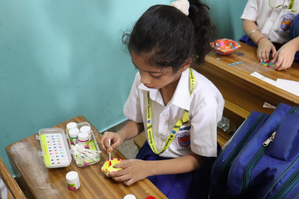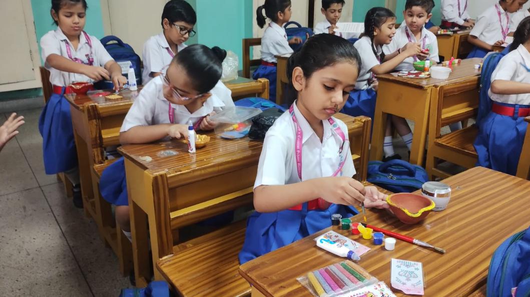 Diya Making Competition to celebrate Diwali, the festival of lights was conducted for Class 1 on 8 Oct 2025. All the children were very excited for it. They brought small diyas and decorated them with colors, glitter, and stickers. Teachers helped and praised everyone’s creativity. It was so much fun to paint and decorate diyas.It was a joyful way to celebrate Diwali together!