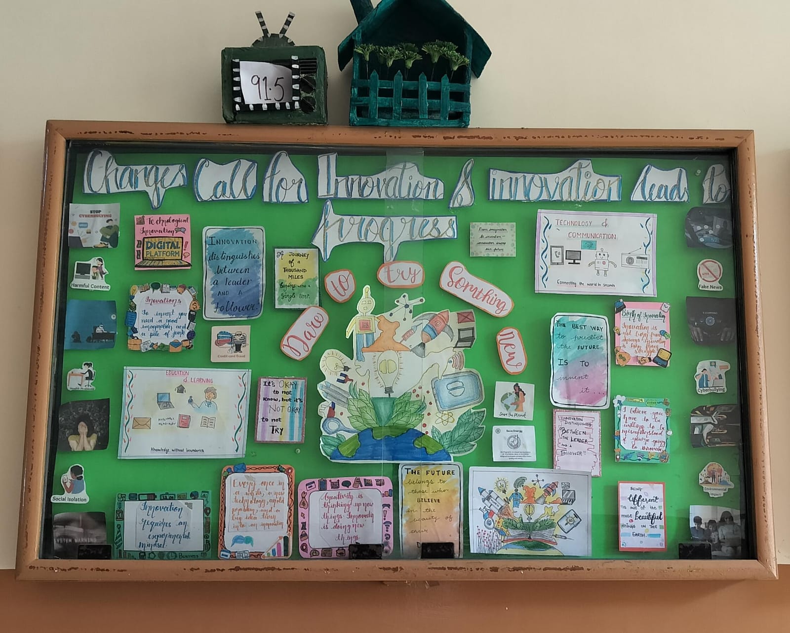 The Junior House Bulletin Board Competition was organized on 10th October 2025 with great enthusiasm and creativity. The theme, “How Innovations Are Changing the World”, invited young minds to explore the power of ideas and inventions that are shaping modern life.Each bulletin board was a vibrant blend of colour, art, and information. The competition not only nurtured artistic expression but also inspired students to recognize how human creativity continues to shape a brighter and smarter world.