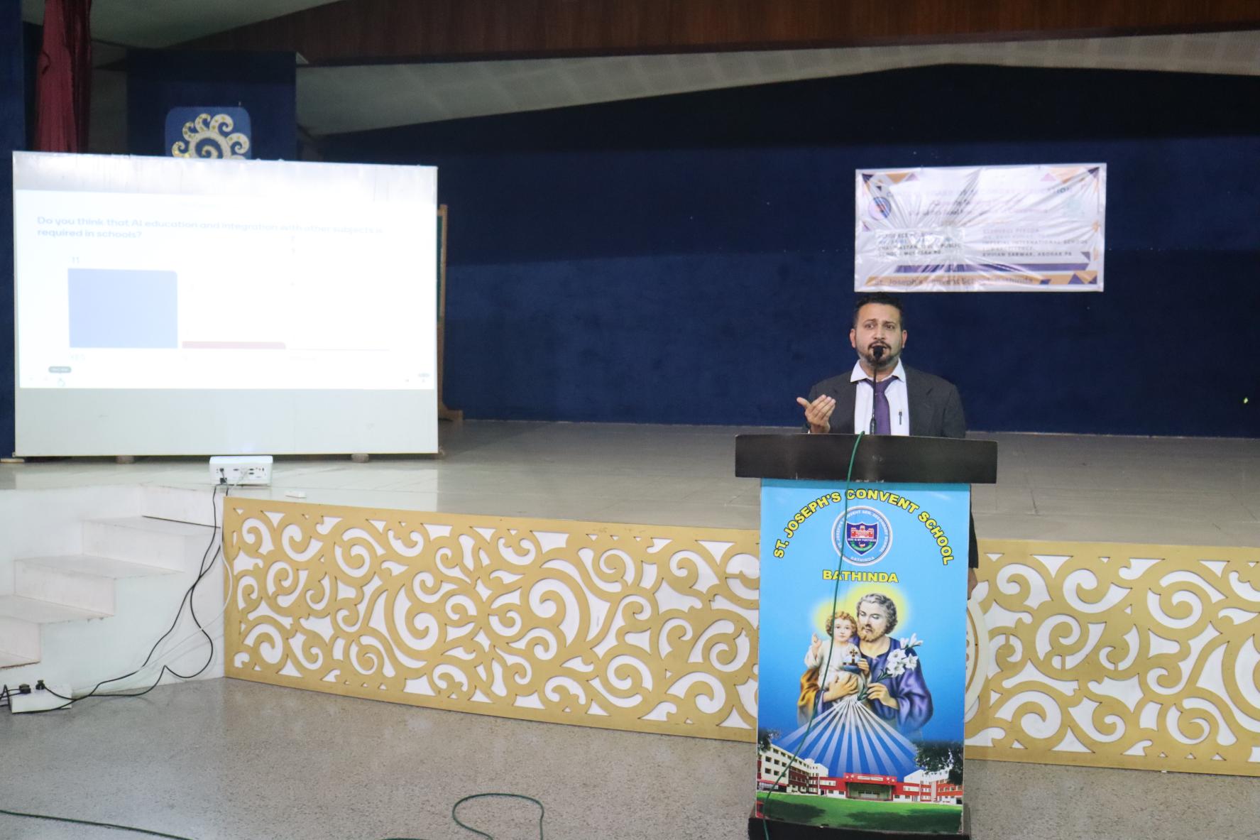 St Joseph’s Convent School, Bathinda, organised a CBSE Capacity Building Programme on the theme “Use of Artificial Intelligence in Classroom.” The session was both riveting and intriguing, conducted by Mr Sahil Charaya, PGT at Bhai Mastan Singh Public School, Muktsar and Mr Ravi Kumar, TGT at Imperial International School for Excellence, Abohar. The workshop focused on the types and goals of AI. Implementation of AI, its significance in education, uses of AI tools to enhance teaching and learning experiences were also discussed. Teachers actively participated in discussions and gained valuable insights into how AI can make classrooms more creative, inclusive, and efficient. The day concluded with a vote of thanks to the resource persons and the school management for facilitating such an enlightening and forward-looking session.