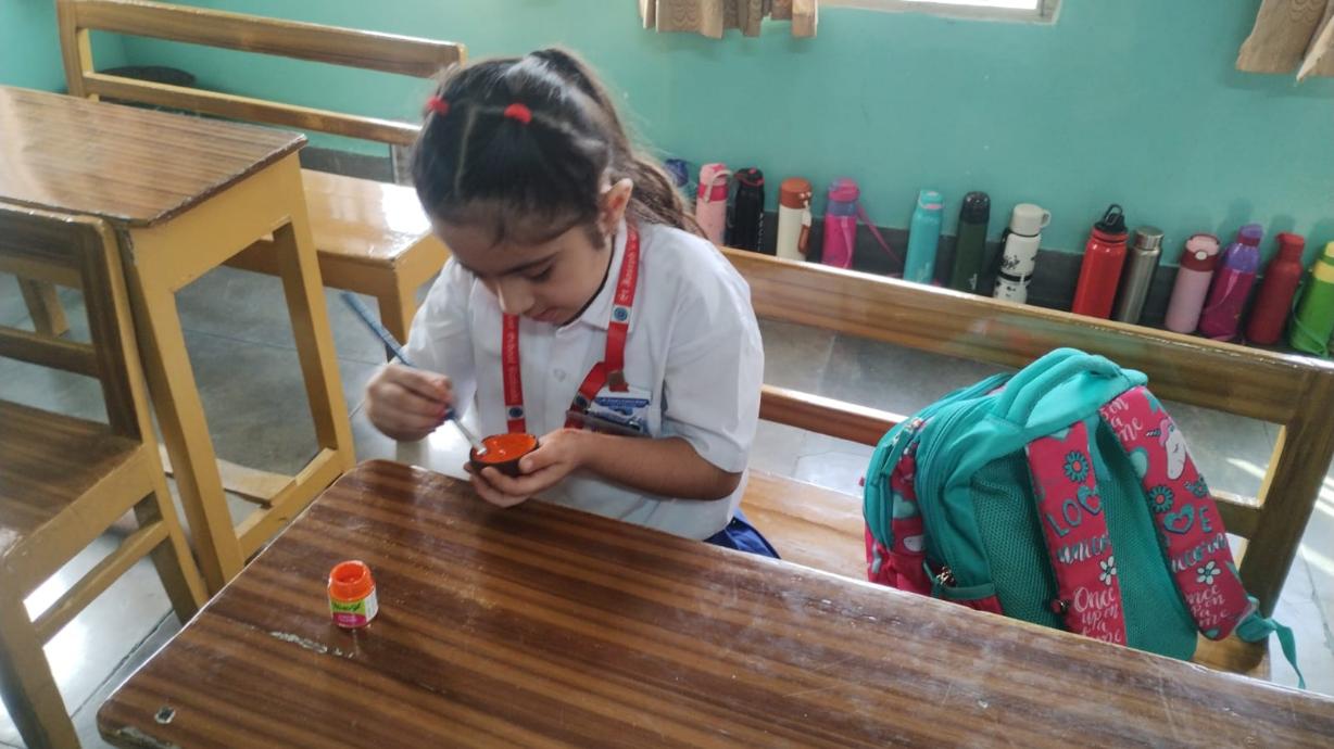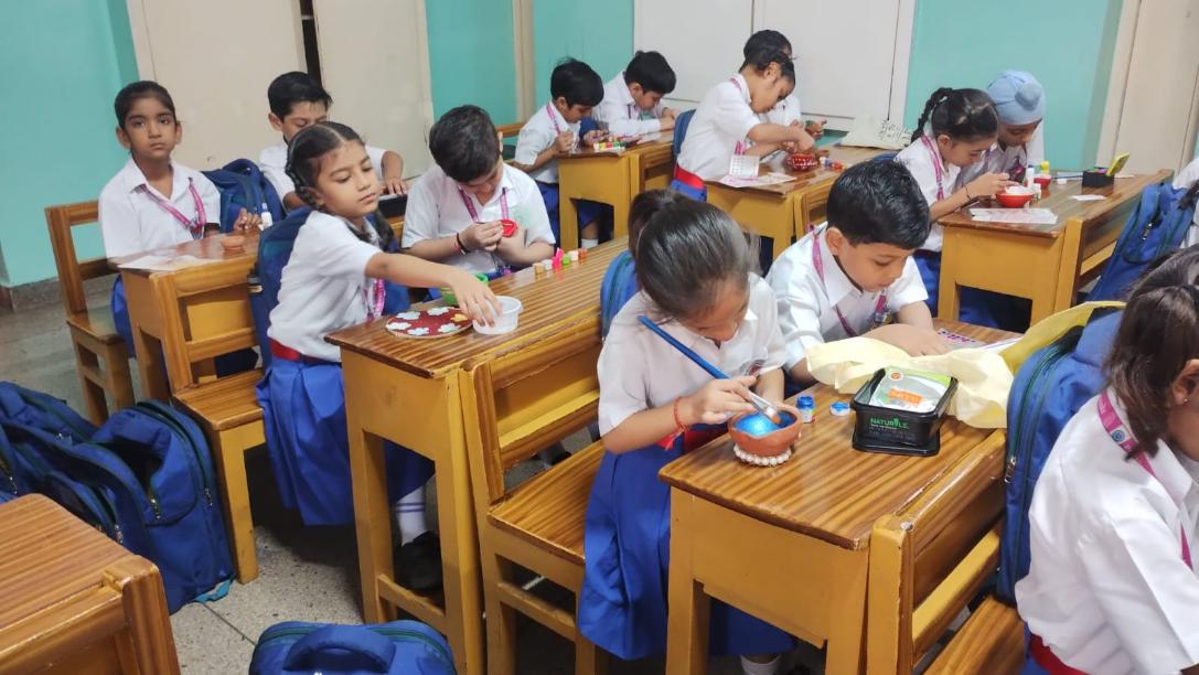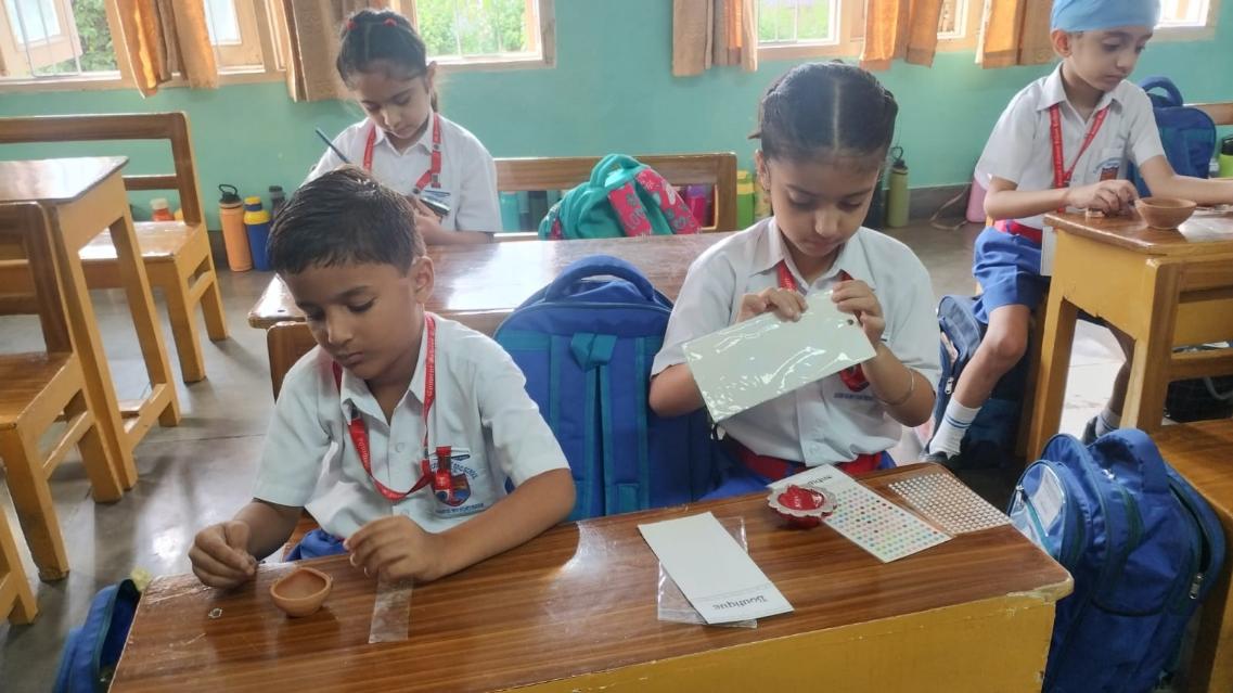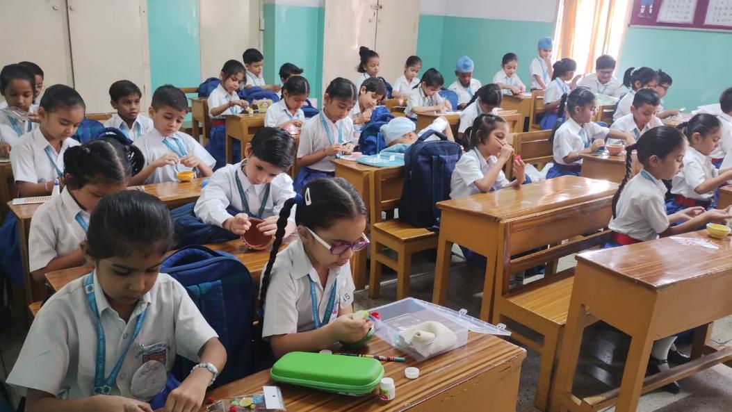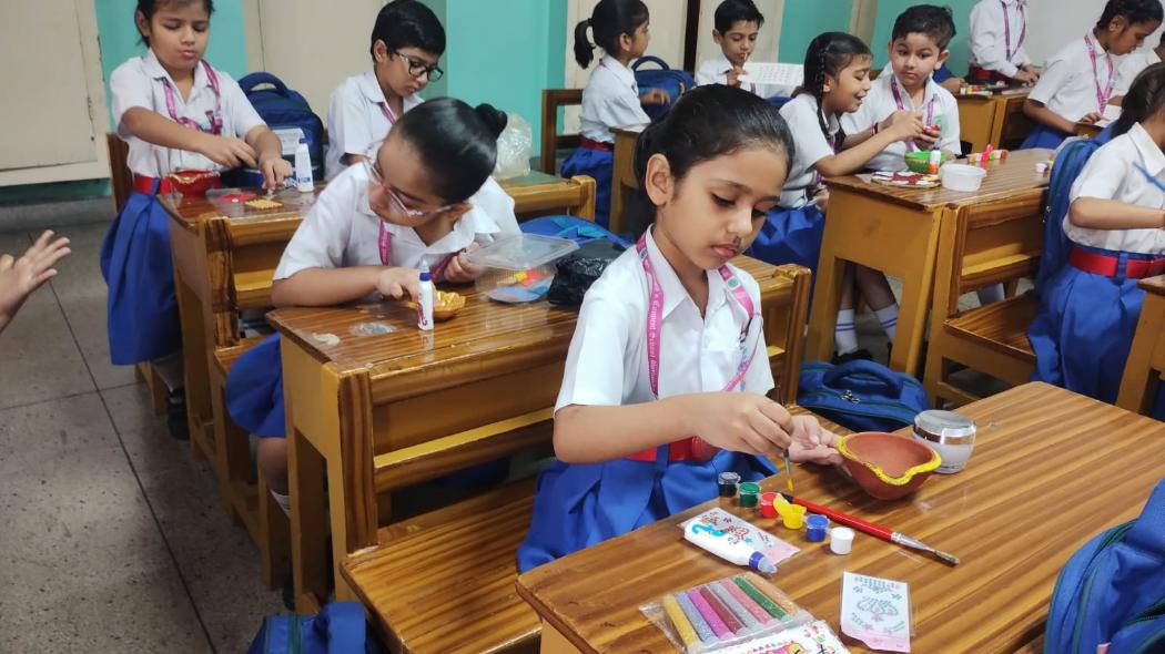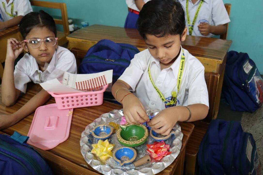 Diya Making Competition to celebrate Diwali, the festival of lights was conducted for Class 1 on 8 Oct 2025. All the children were very excited for it. They brought small diyas and decorated them with colors, glitter, and stickers. Teachers helped and praised everyone’s creativity. It was so much fun to paint and decorate diyas.It was a joyful way to celebrate Diwali together!