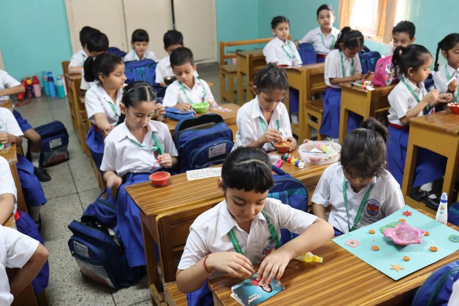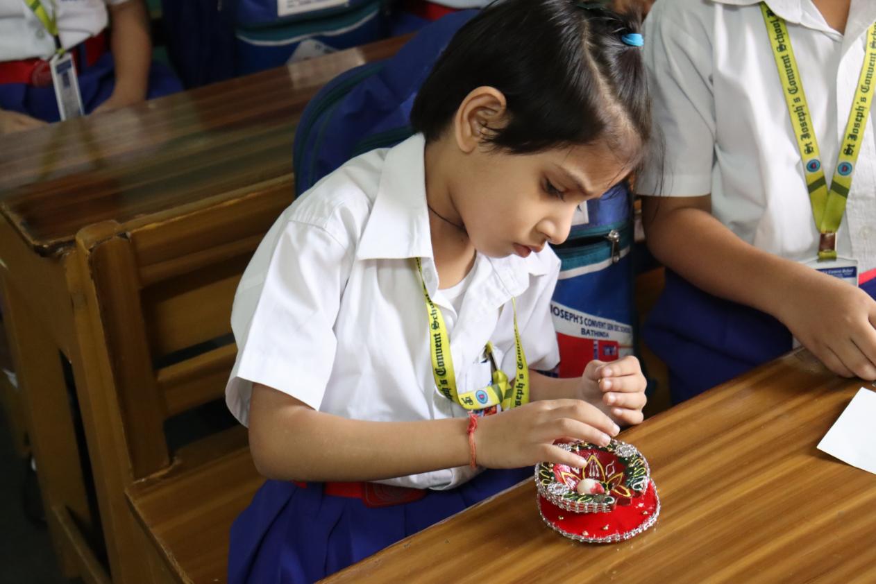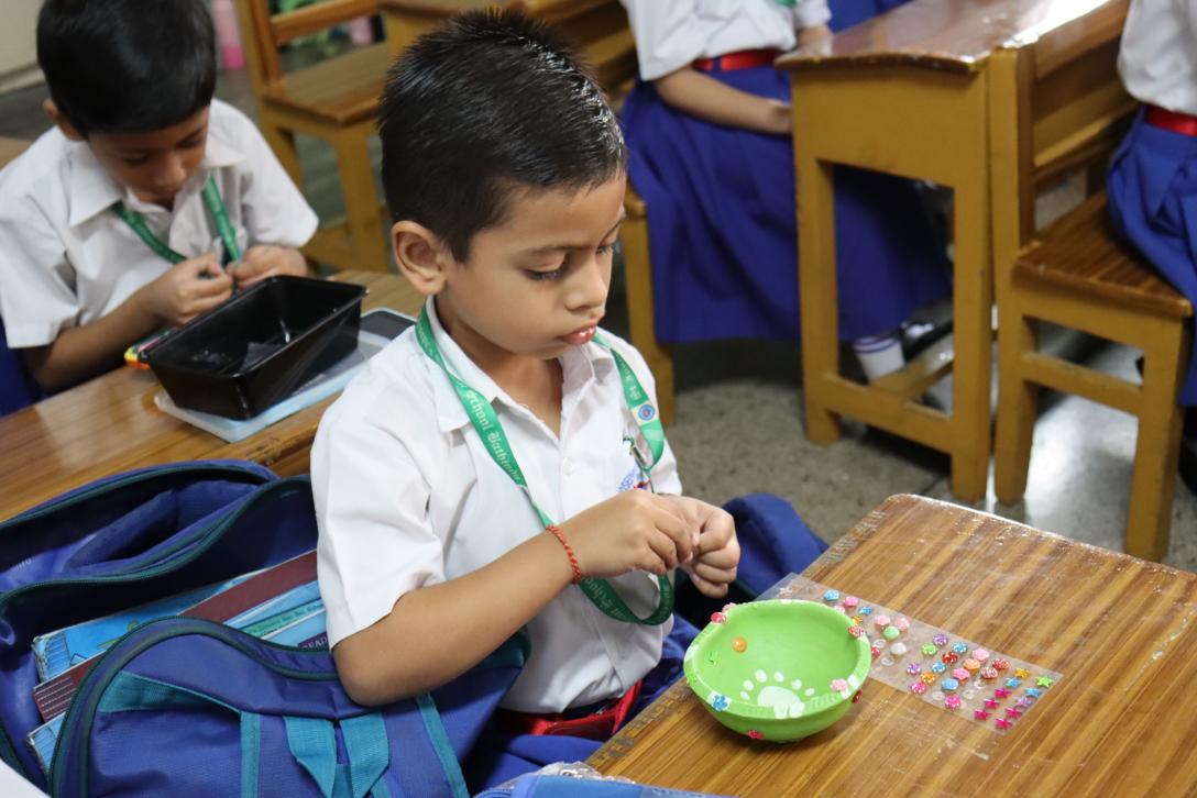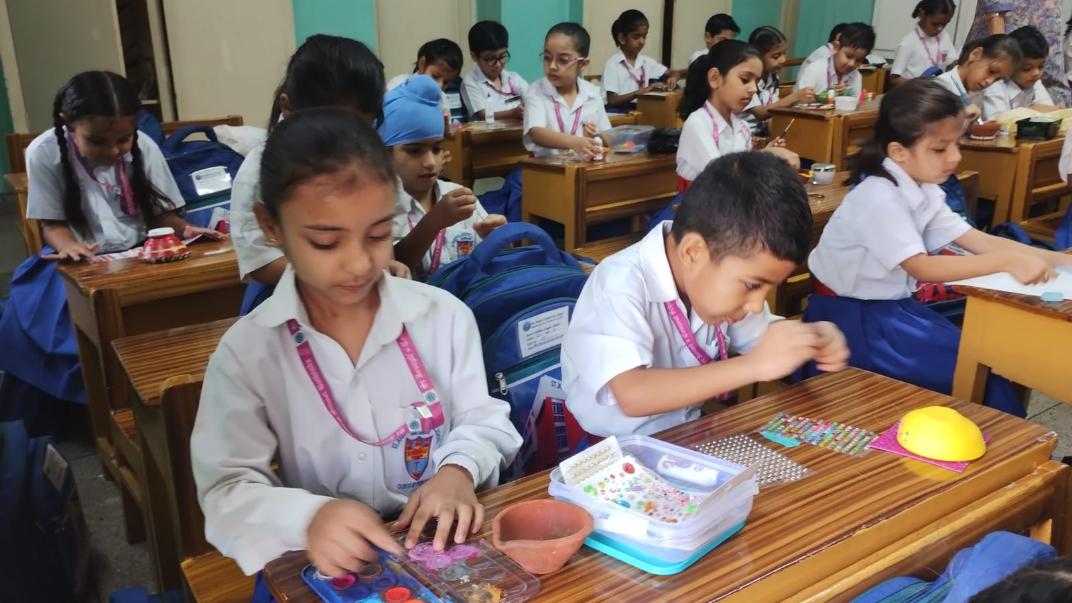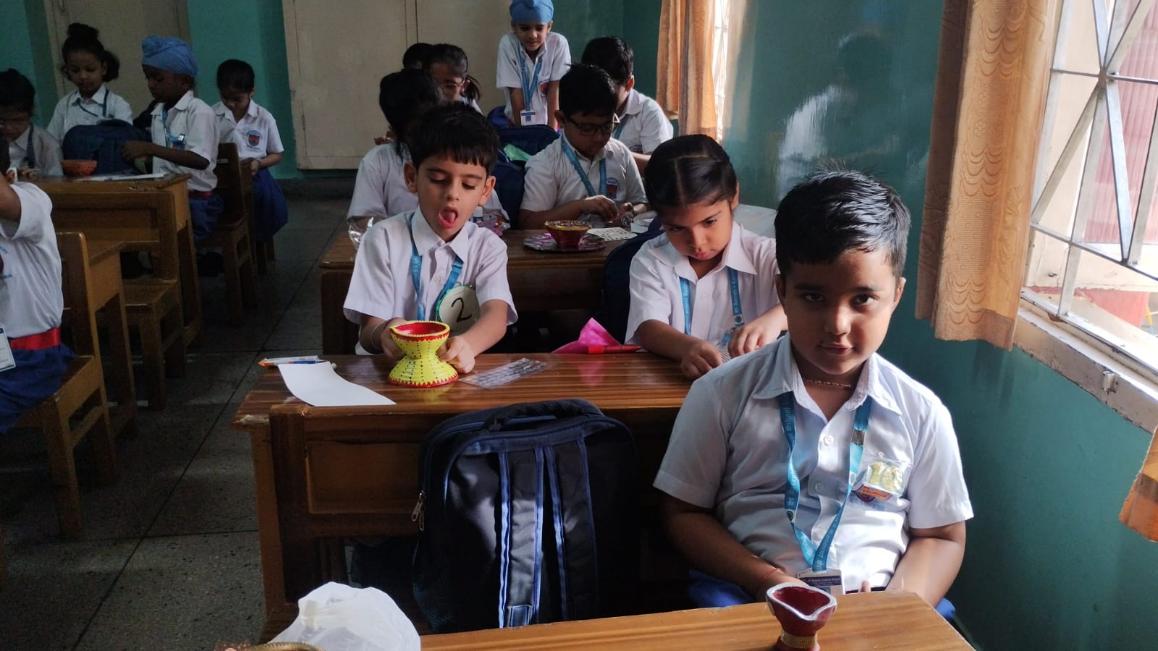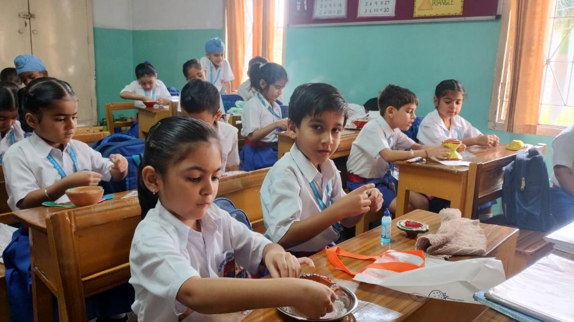 Diya Making Competition to celebrate Diwali, the festival of lights was conducted for Class 1 on 8 Oct 2025. All the children were very excited for it. They brought small diyas and decorated them with colors, glitter, and stickers. Teachers helped and praised everyone’s creativity. It was so much fun to paint and decorate diyas.It was a joyful way to celebrate Diwali together!