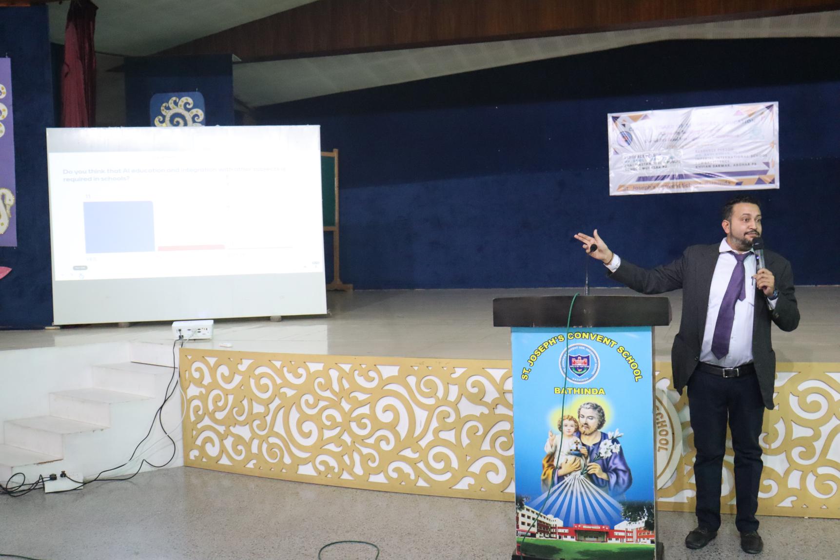 St Joseph’s Convent School, Bathinda, organised a CBSE Capacity Building Programme on the theme “Use of Artificial Intelligence in Classroom.” The session was both riveting and intriguing, conducted by Mr Sahil Charaya, PGT at Bhai Mastan Singh Public School, Muktsar and Mr Ravi Kumar, TGT at Imperial International School for Excellence, Abohar. The workshop focused on the types and goals of AI. Implementation of AI, its significance in education, uses of AI tools to enhance teaching and learning experiences were also discussed. Teachers actively participated in discussions and gained valuable insights into how AI can make classrooms more creative, inclusive, and efficient. The day concluded with a vote of thanks to the resource persons and the school management for facilitating such an enlightening and forward-looking session.