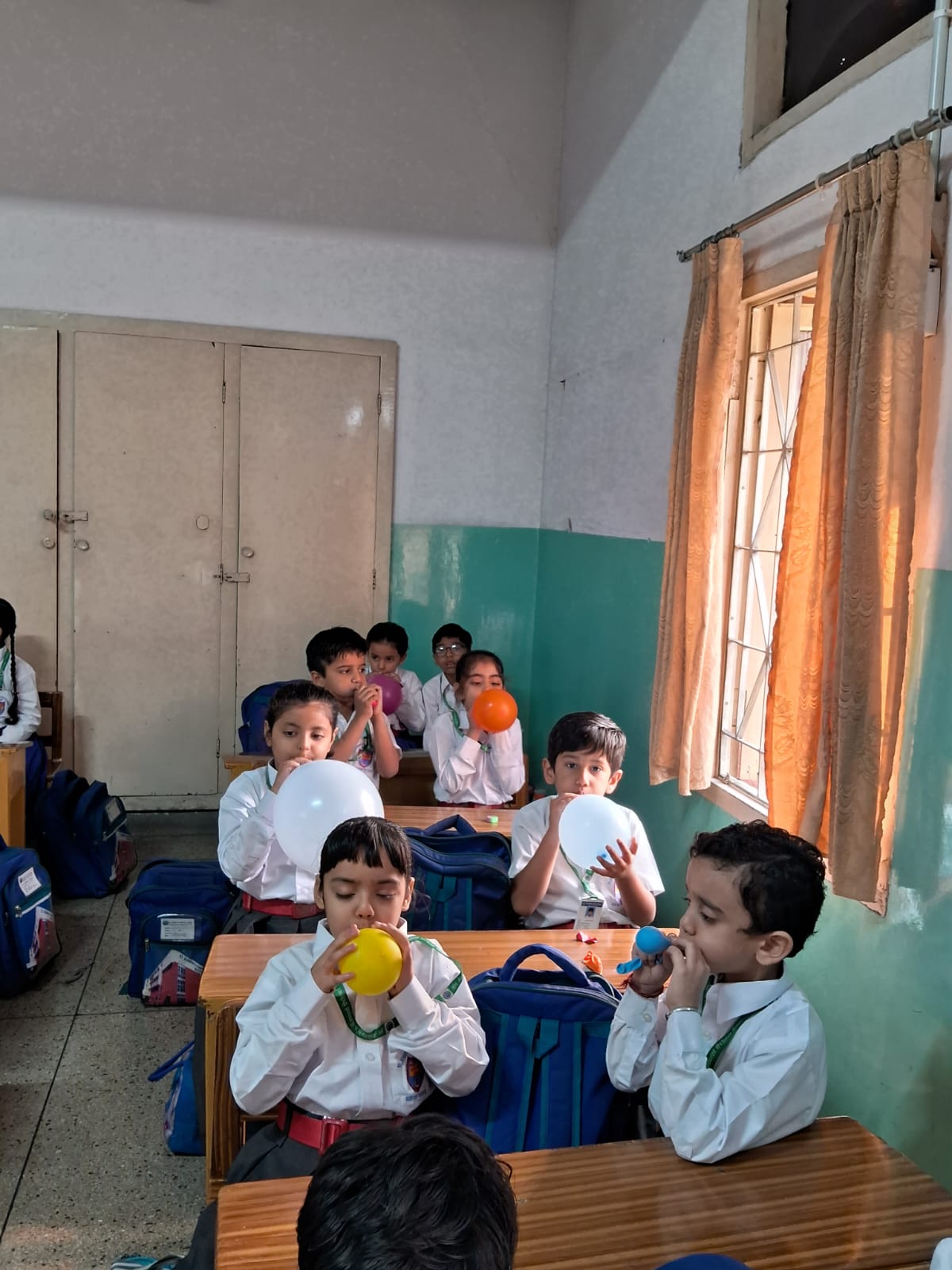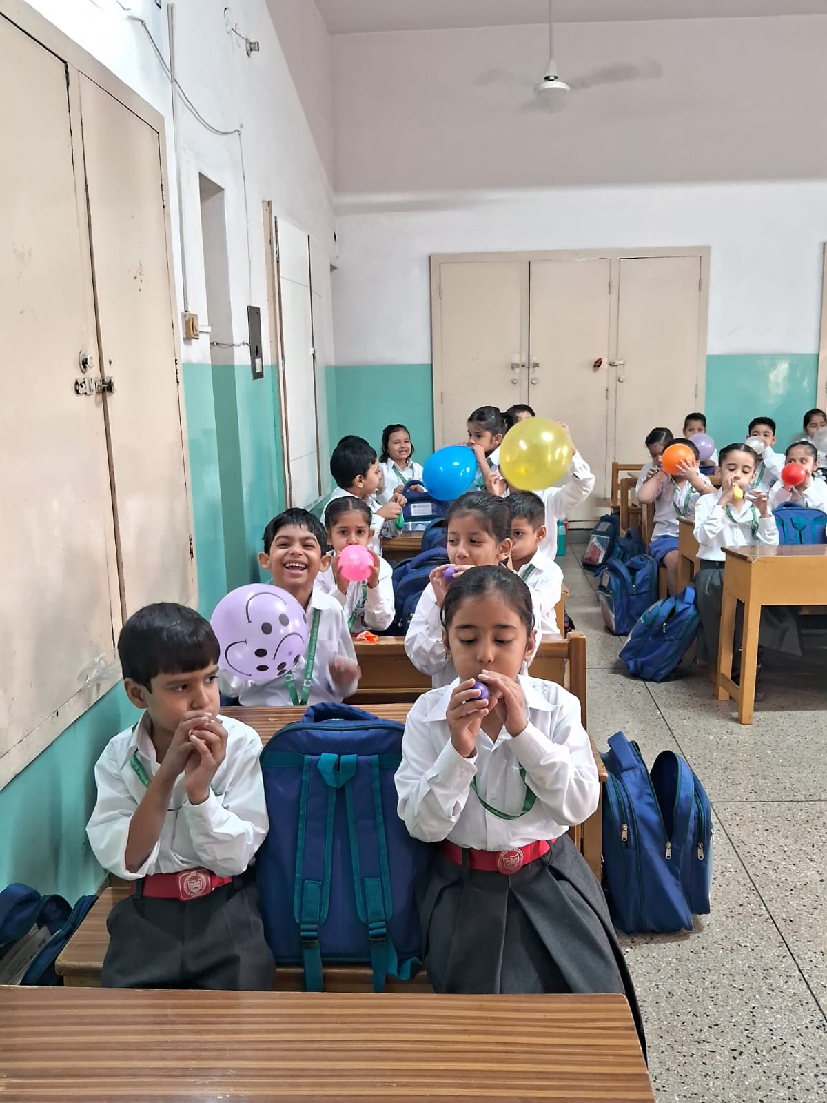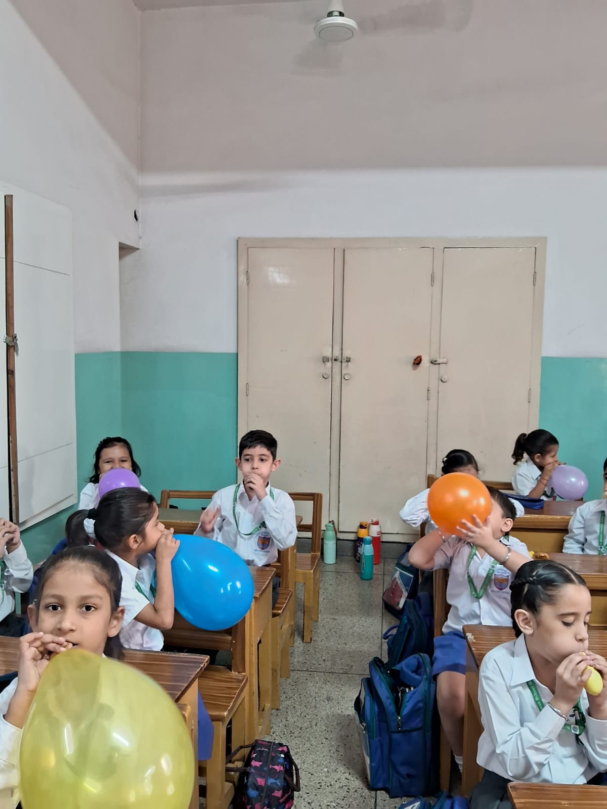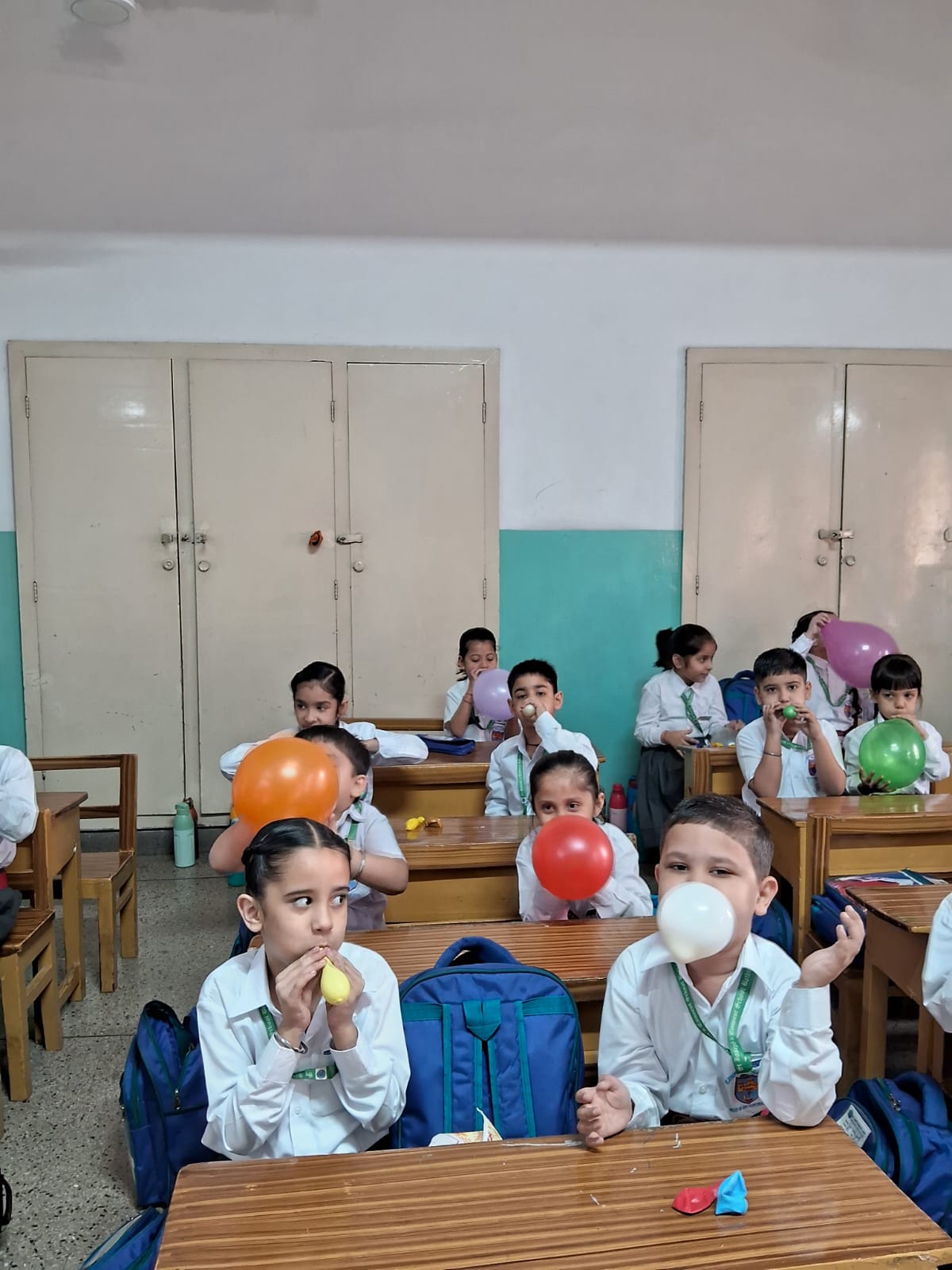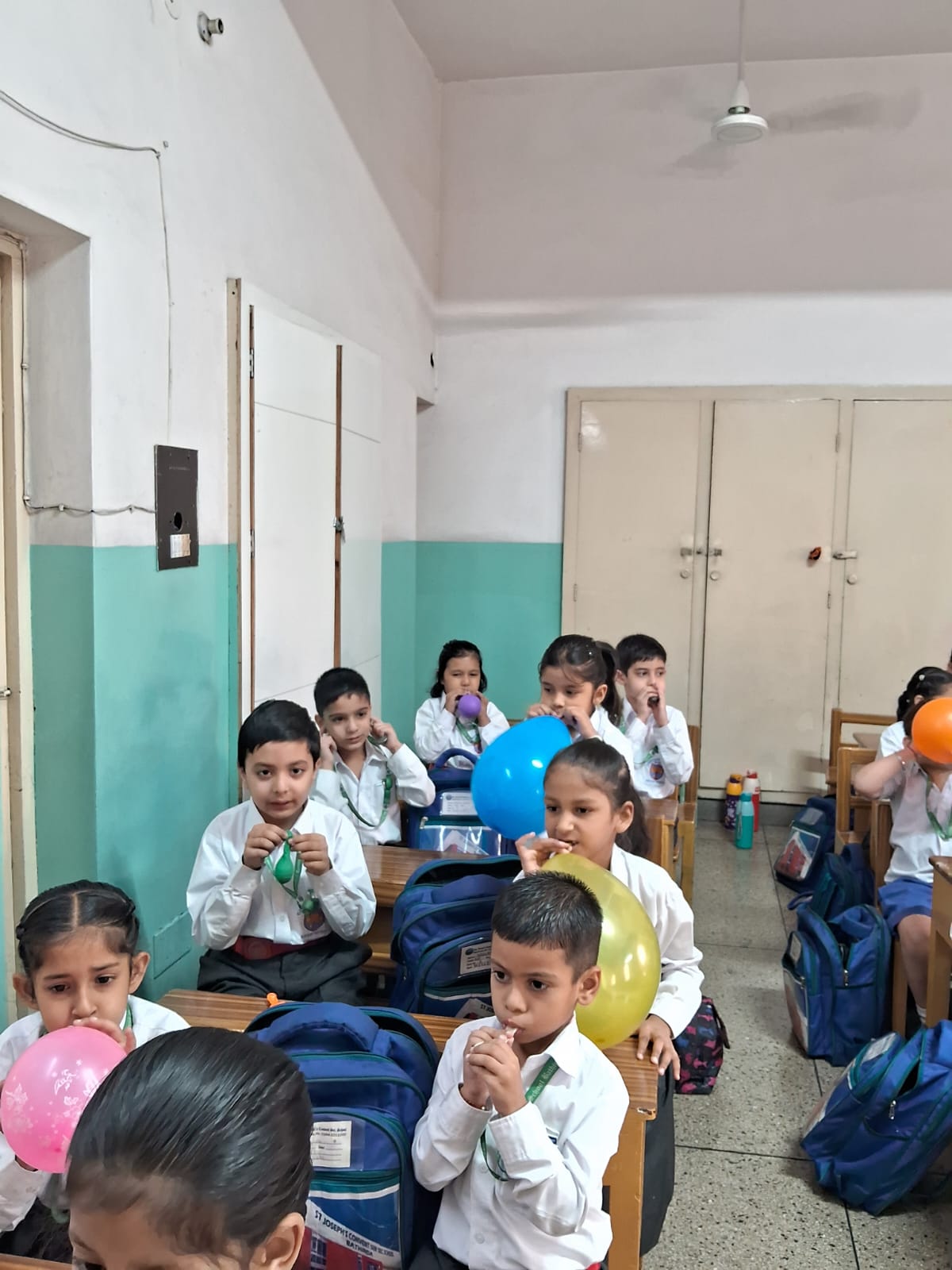 A class activity titled “Blow the Balloon” was conducted today, ie - 28.10.25 for the students of Class 1 based on the EVS chapter – Air. The activity was designed to help children understand that air has weight and occupies space. Through the play-way method, students actively participated and enjoyed the hands-on learning experience. The activity made the concept clear and engaging for the young learners.