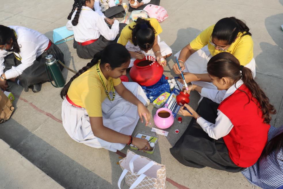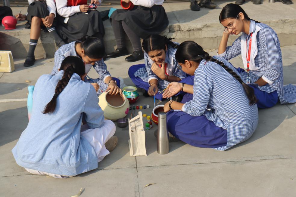 The Inter-House Pot Decoration Competition was held on 12th November with an enthusiastic participation from Senior Houses. The competition aimed to encourage creativity, artistic expression, and teamwork among students. Each house presented beautifully decorated pots showcasing a variety of themes such as nature, festivals, and cultural art forms. Students demonstrated impressive skills in painting, designing, and embellishing their pots using eco-friendly materials. The atmosphere was lively and filled with excitement as participants worked together to bring their ideas to life.
