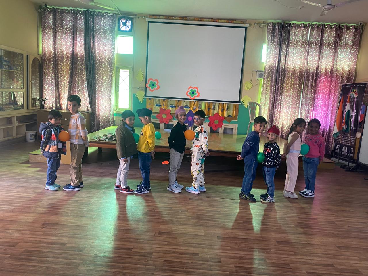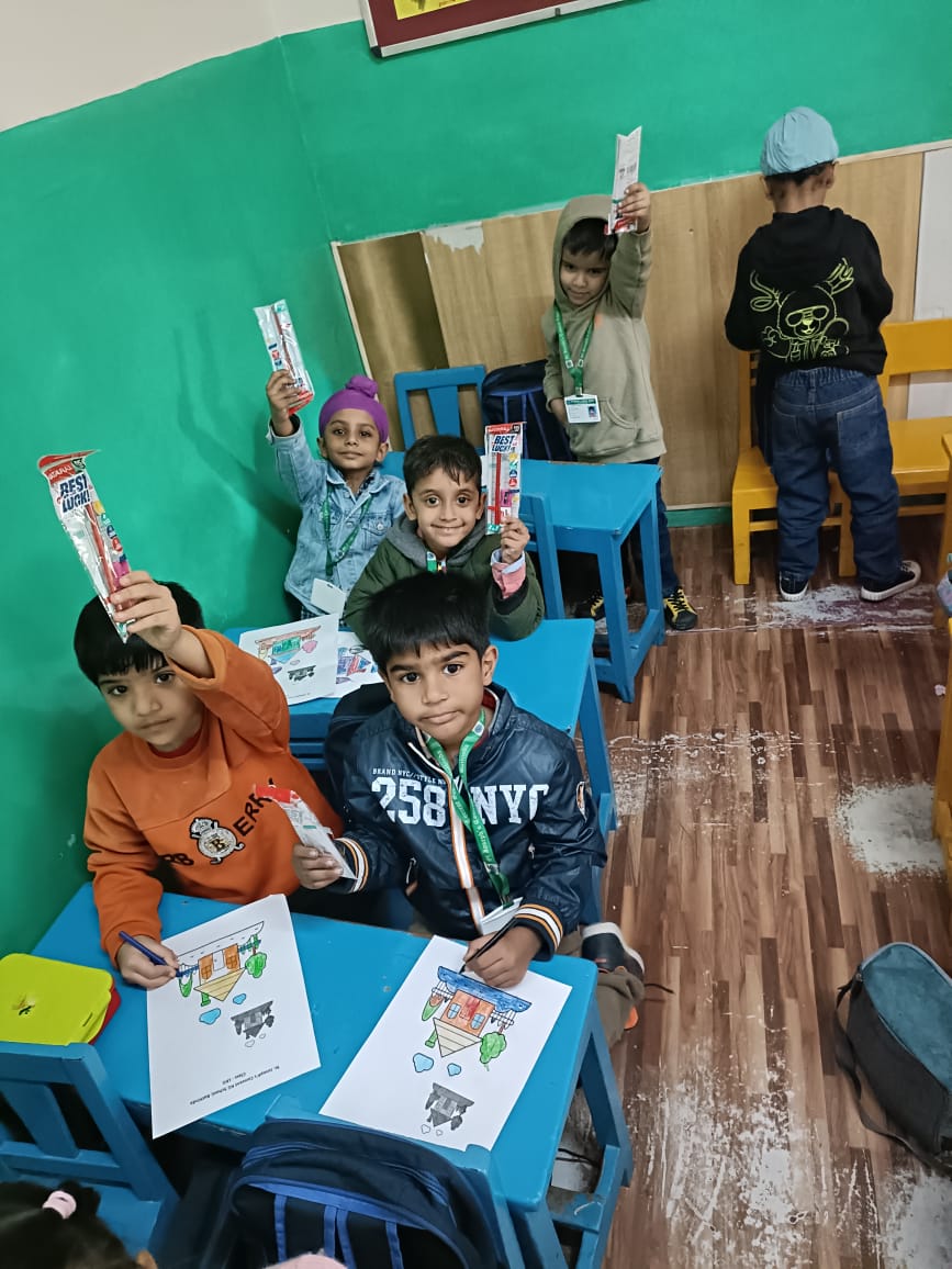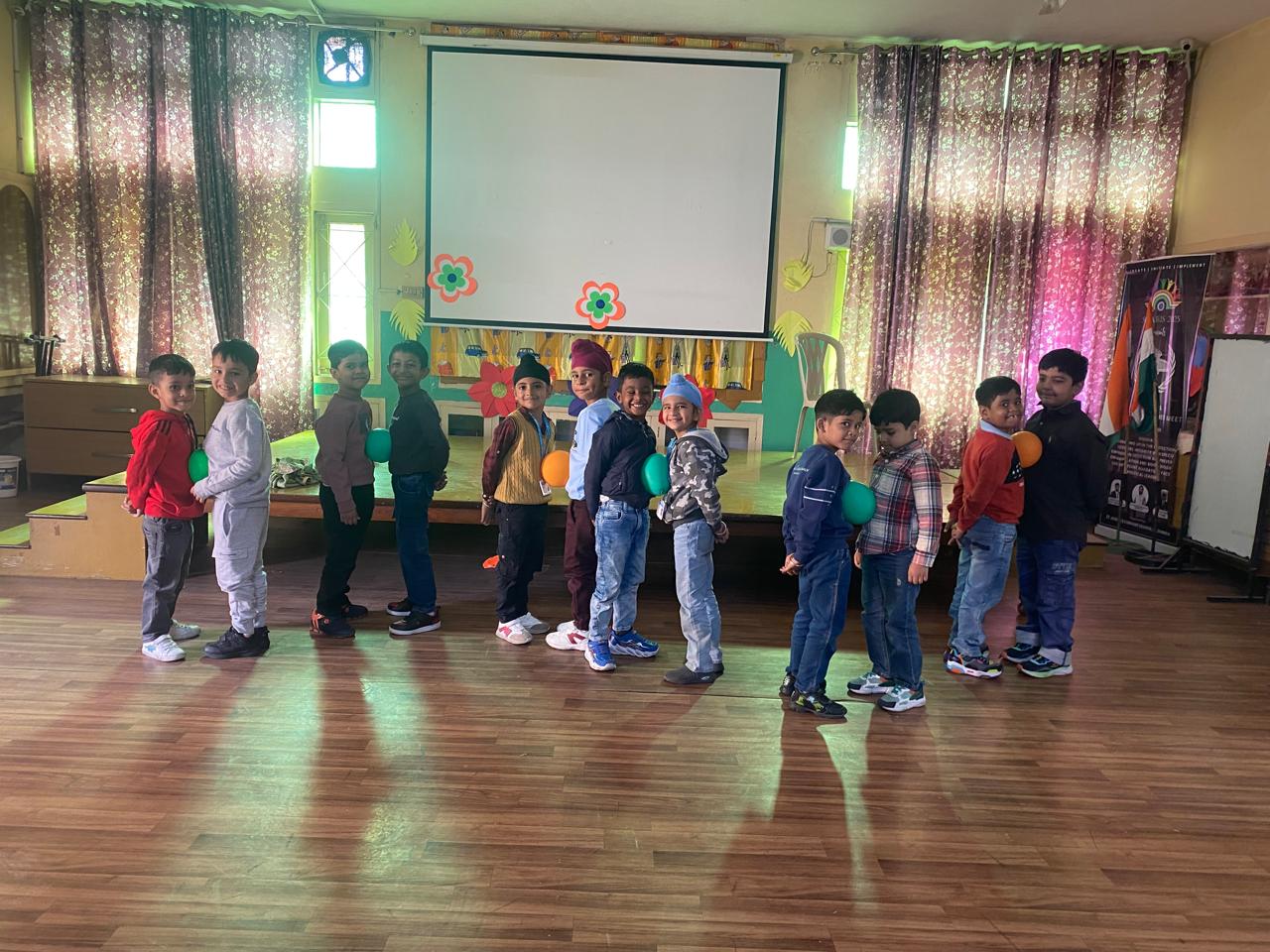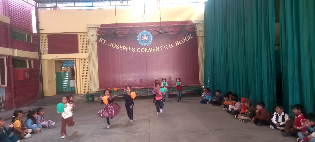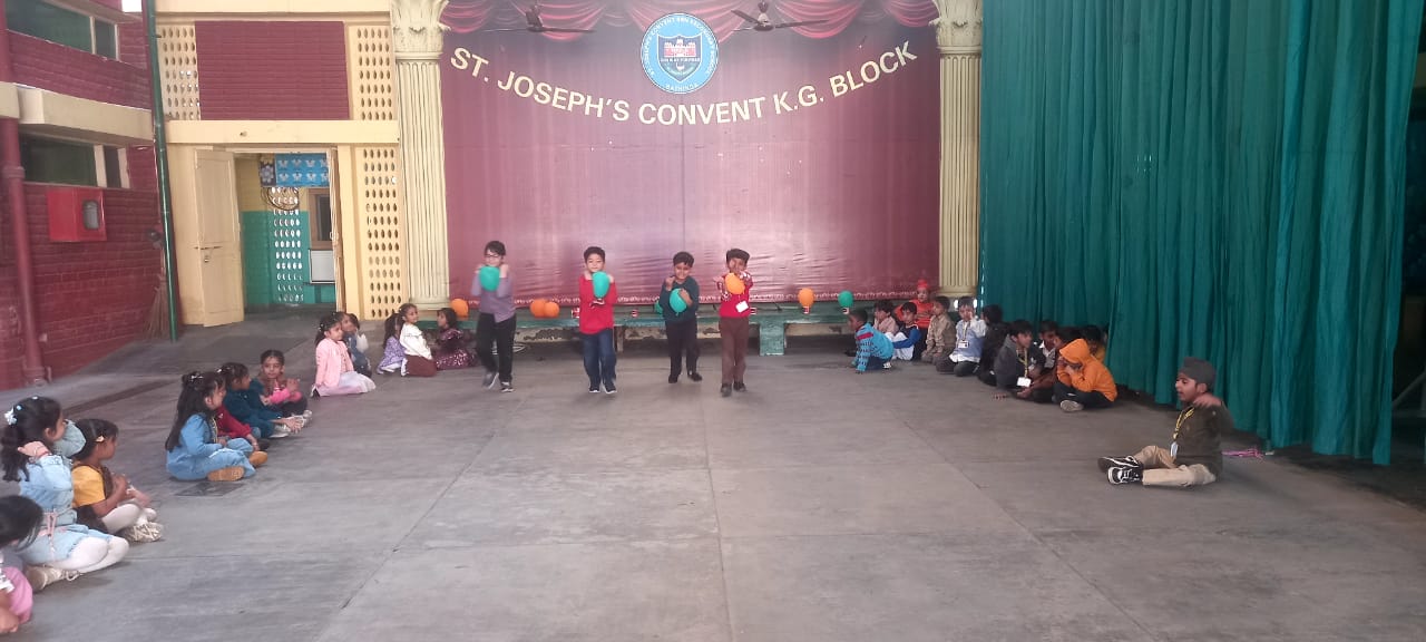On Children’s Day, LKG and UKG kids enjoyed a happy Bagless Day at school.Teachers planned fun activities that the children loved.They also put up a small function to make the day special for the kids.The children enjoyed playing, singing, and spending time with their friends.It was a joyful and memorable day for everyone.