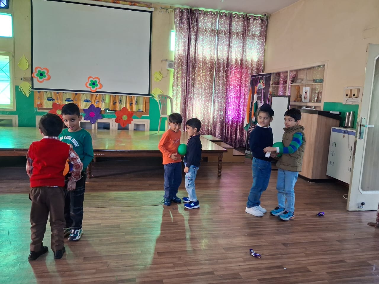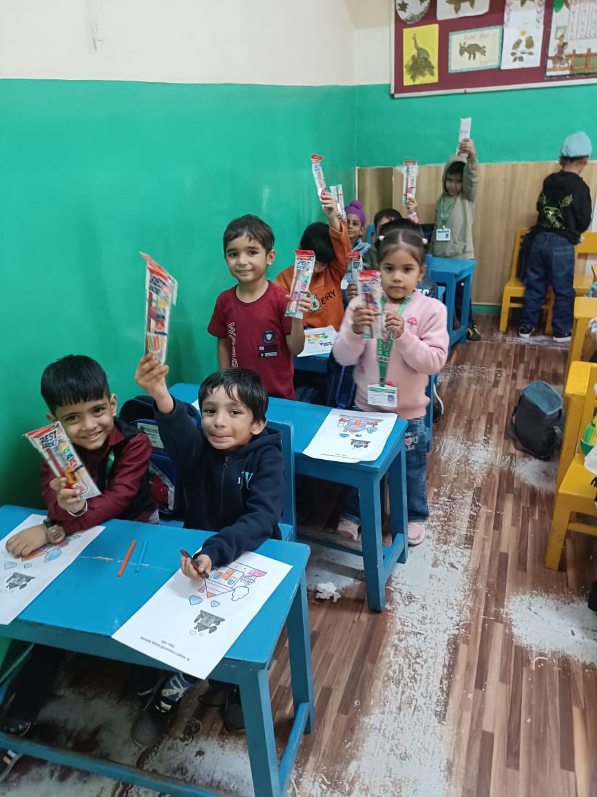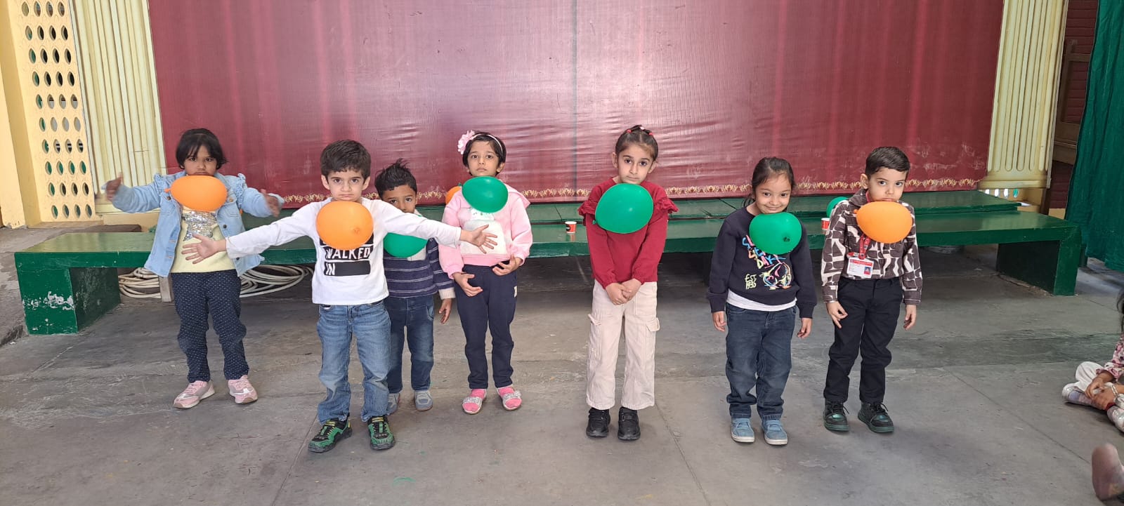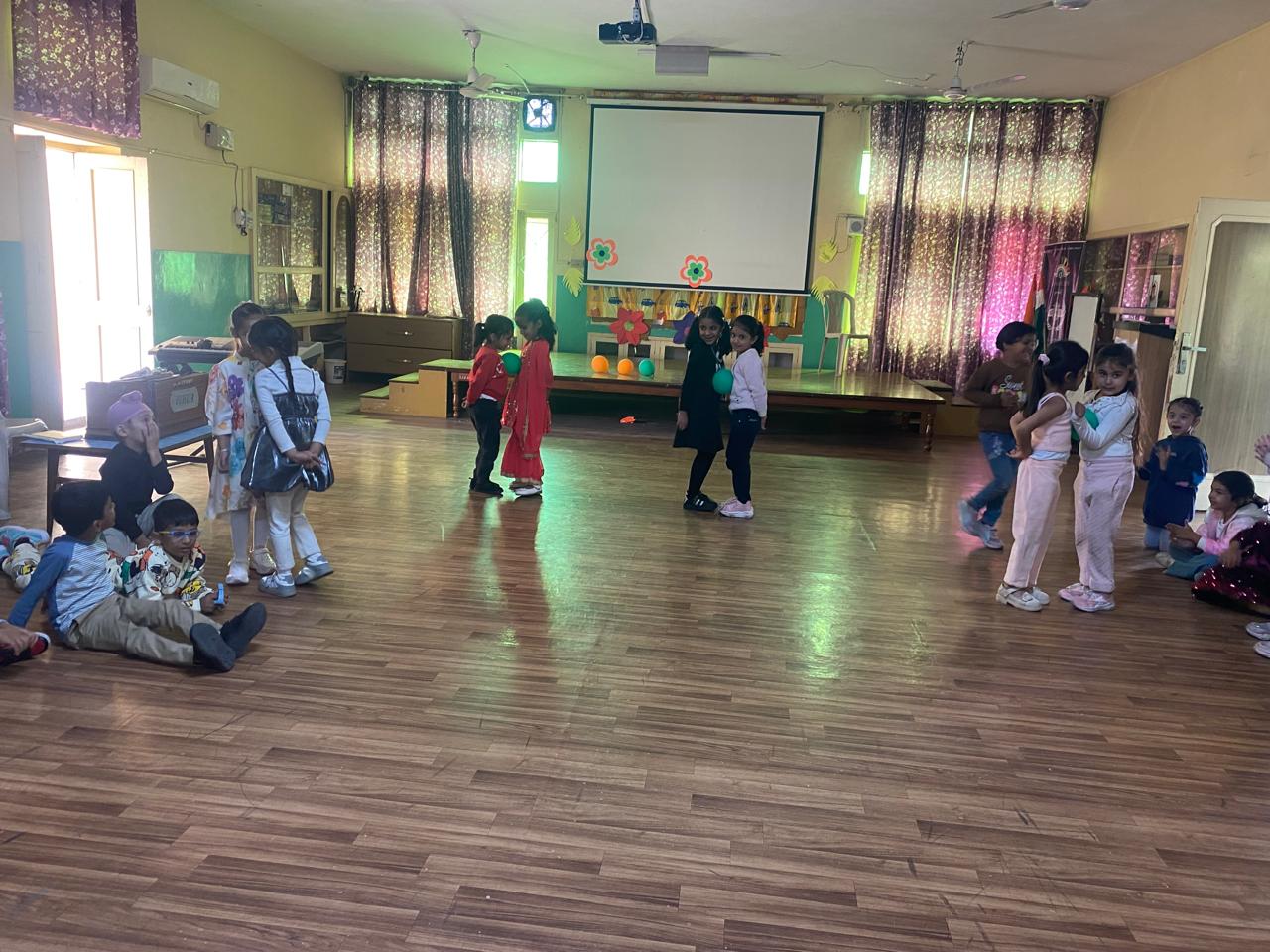On Children’s Day, LKG and UKG kids enjoyed a happy Bagless Day at school.Teachers planned fun activities that the children loved.They also put up a small function to make the day special for the kids.The children enjoyed playing, singing, and spending time with their friends.It was a joyful and memorable day for everyone.