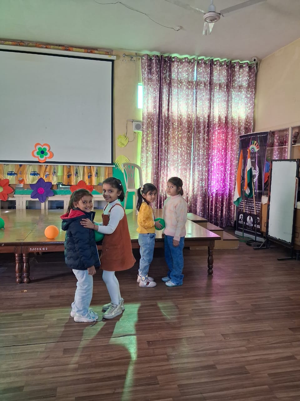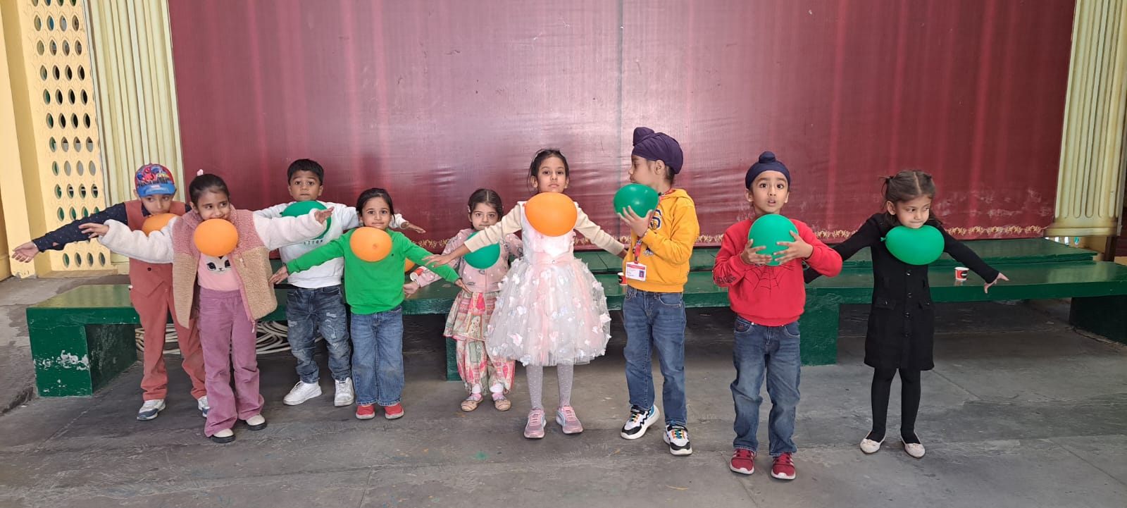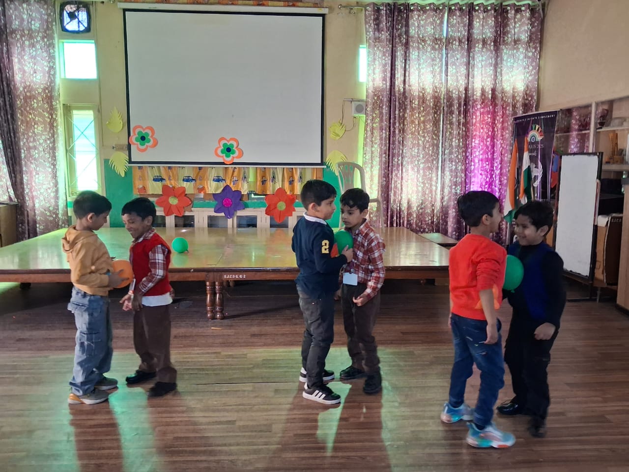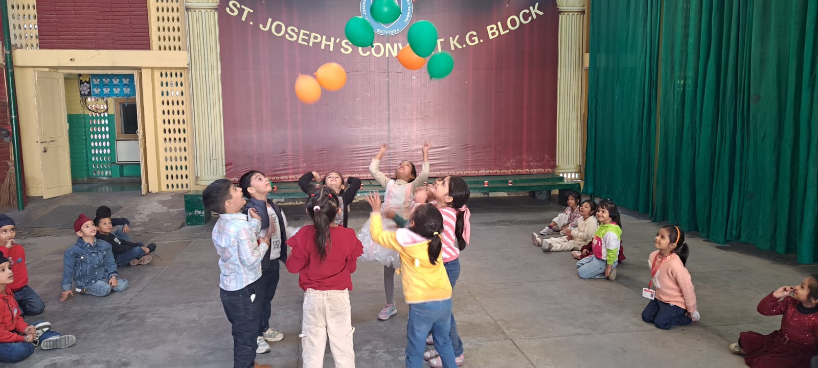 On Children’s Day, LKG and UKG kids enjoyed a happy Bagless Day at school.Teachers planned fun activities that the children loved.They also put up a small function to make the day special for the kids.The children enjoyed playing, singing, and spending time with their friends.It was a joyful and memorable day for everyone.