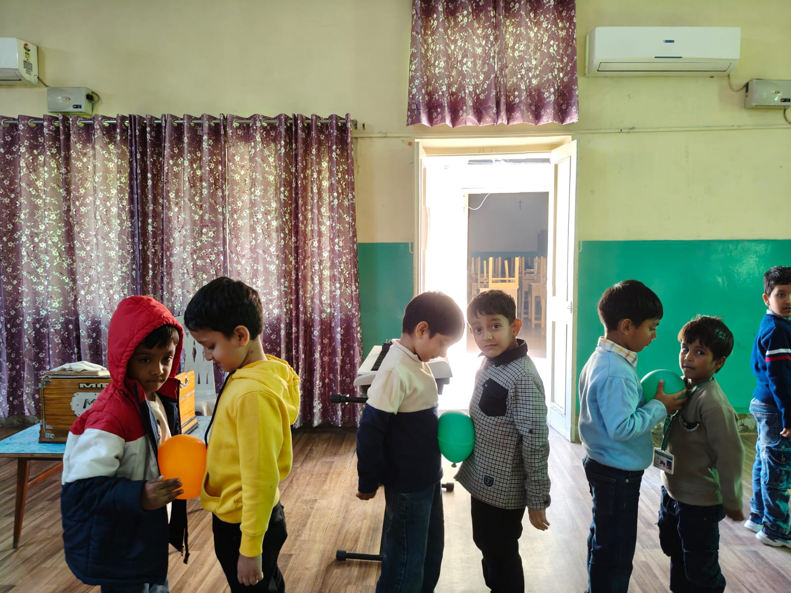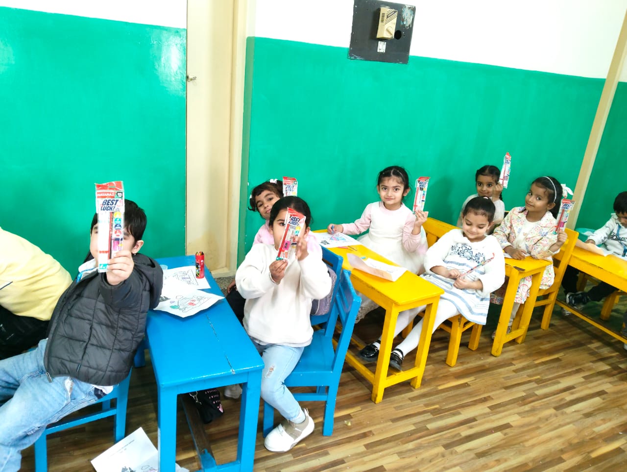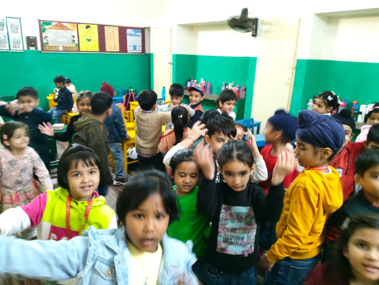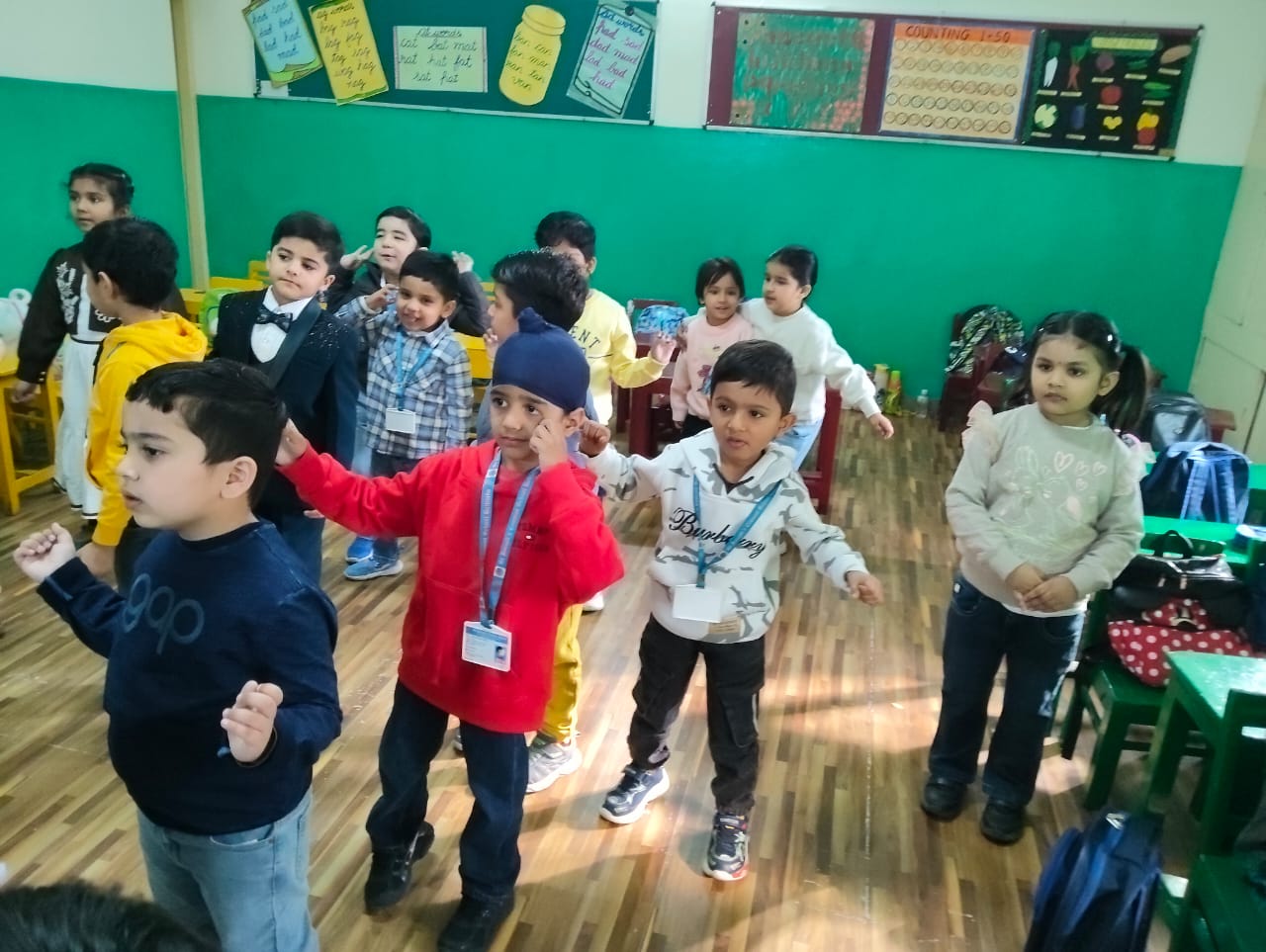 On Children’s Day, LKG and UKG kids enjoyed a happy Bagless Day at school.Teachers planned fun activities that the children loved.They also put up a small function to make the day special for the kids.The children enjoyed playing, singing, and spending time with their friends.It was a joyful and memorable day for everyone.